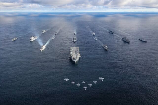 As a result, HMS Prince of Wales led a carrier strike group of eight ships – four of them British, including frigate HMS Somerset and two Tide-class tankers from the Royal Fleet Auxiliary – supported by US, Spanish and Danish vessels.